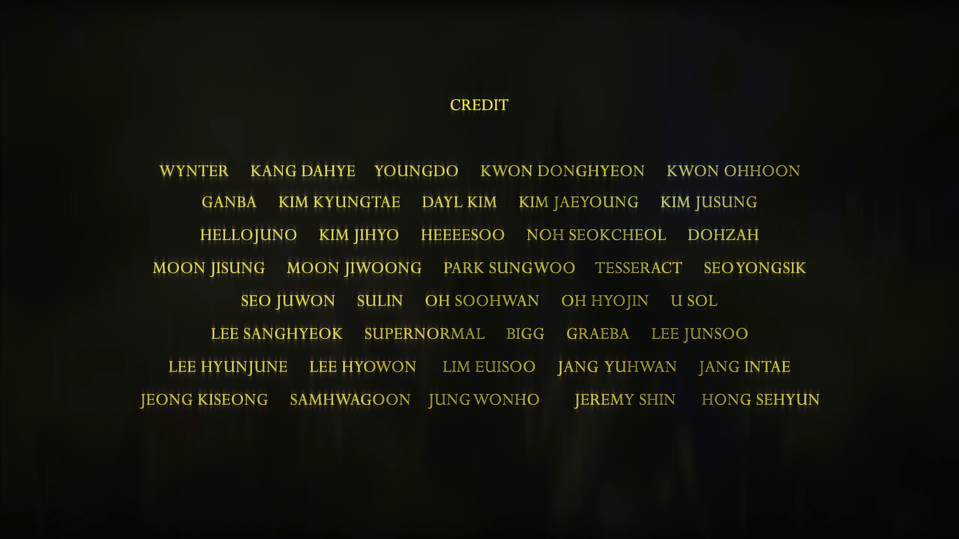 Jung wonho / Bigg / Hellojuno / Wynter / Kang Dahye / Youngdo / Kwon donghyeon / Kwon ohhoon / Ganba / Kim kyungtae / Dayl kim / Kim jaeyoung / Kim jusung / Kim jihyo / Heeeesoo / Noh seokcheol / Dohzah / Moon Jisung / Moon Jiwoong / Park sungwoo / Tesseract / Seo yongsik / Seo Juwon / Sulin / Oh soohwan / Oh hyojin / U sol / Lee sanghyeok / Supernormal / Graeba / Lee Junsoo / Lee hyunjune / Lee hyowon / Lim euisoo / Jang yuhwan / Jang intae / Jeong kiseong / Samhwagoon / Jeremy Shin / Hong sehyun