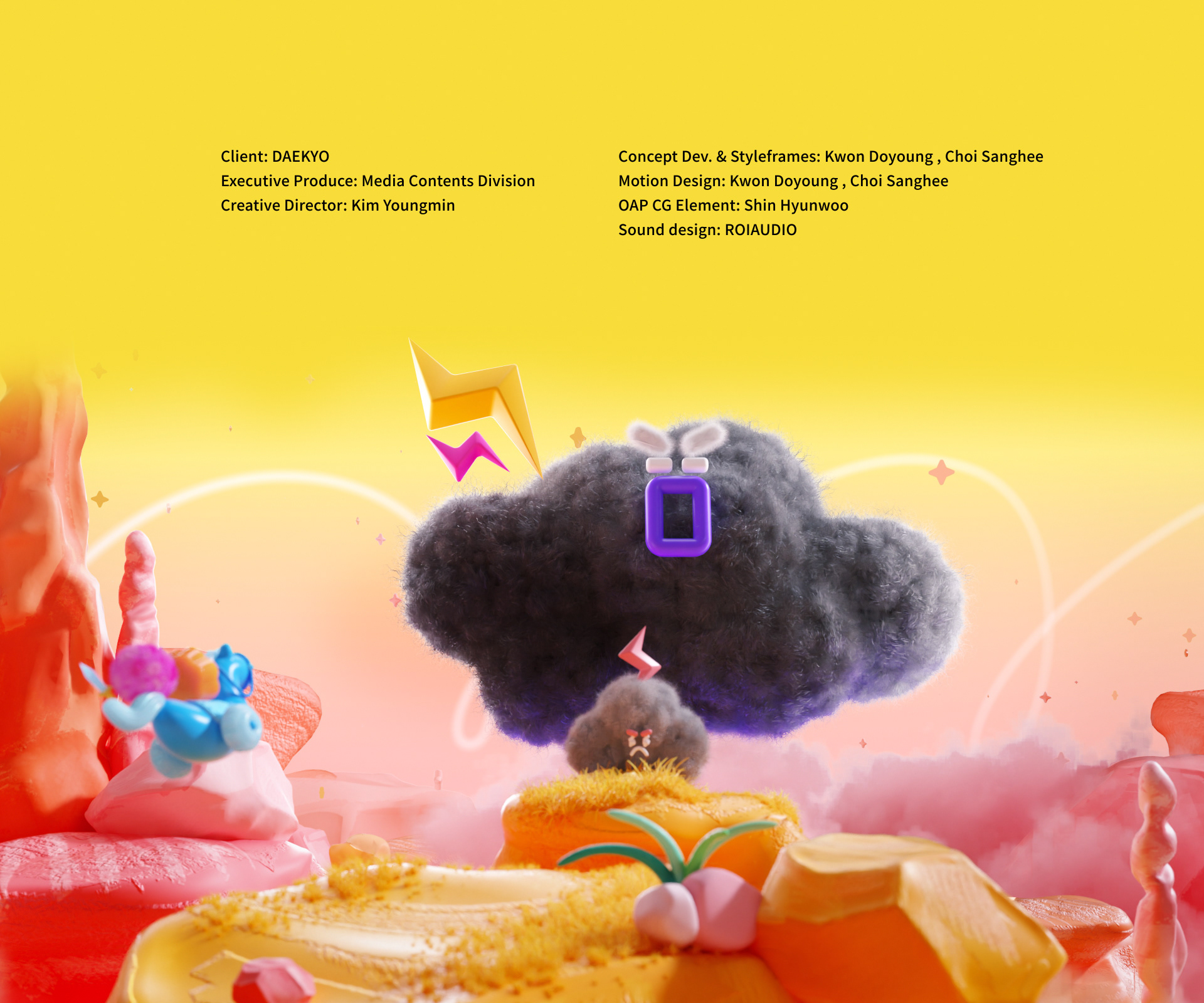 Client: DAEKYO Executive Produce: Media Contents Division Creative Director: Kim Youngmin Concept Dev. & Styleframes: Kwon Doyoung, Choi Sanghee Motion Design: Kwon Doyoung, Choi Sanghee OAP CG Element: Shin Hyunwoo Sound design: ROIAUDIO